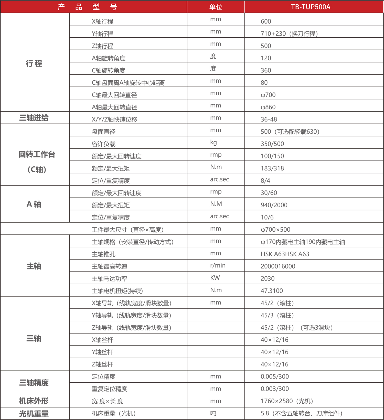 - 用于載重的工作臺固定于底座上只進行搖擺、旋轉(zhuǎn)運動,與三軸直線運動軸分離,三軸運動不受工件重量變化和轉(zhuǎn)臺旋轉(zhuǎn)慣量的影響聯(lián)動、跟隨精度高,可達(dá)到高穩(wěn)定的加工性能;
